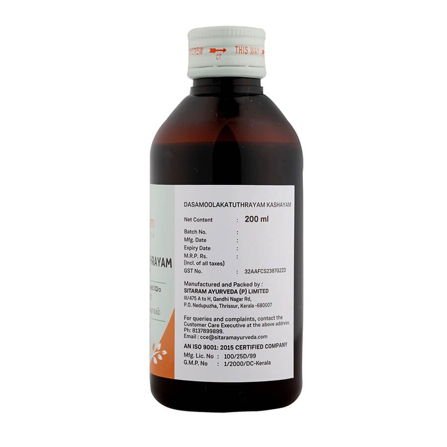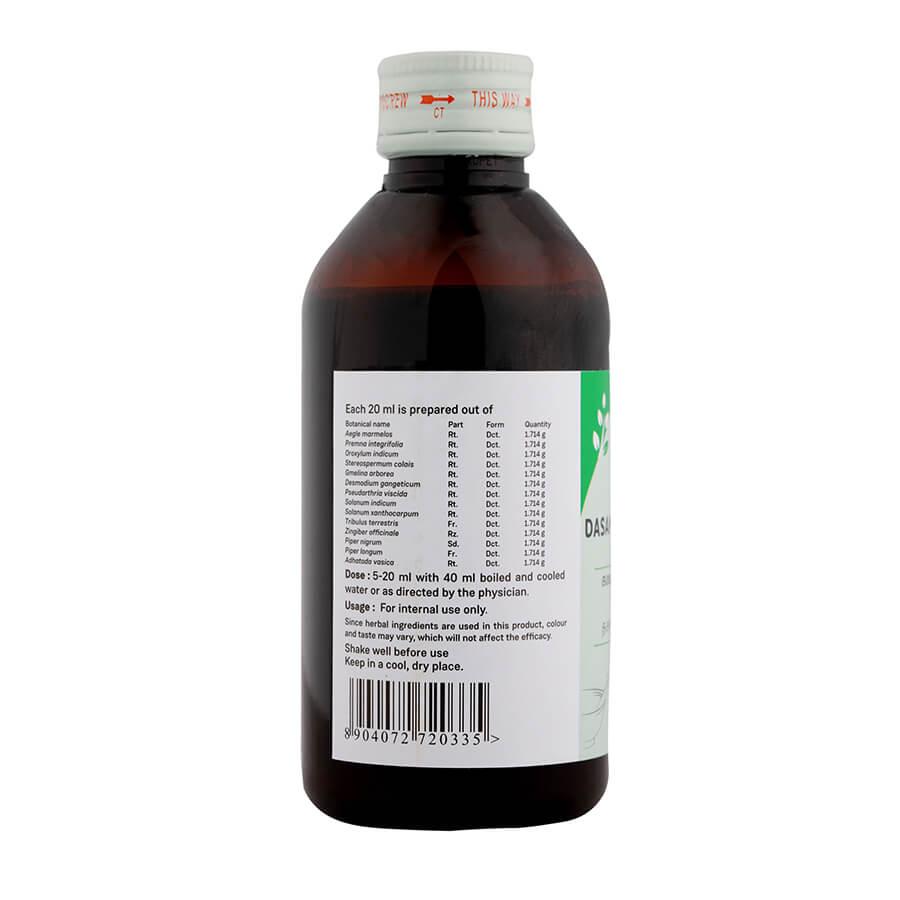 ?Dasamoola? the group of 10 anti-inflammatory roots along with ?Trikatu? the trio of pungent berries come together with Vasa (Adathoda vasica), a natural expectorant, in this herbal decoction.