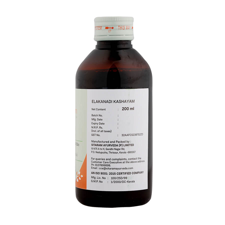 The reference for ?Elakanadi Kashayam? is found in the context of ?Kshatakasa? which can be co-related with chronic cough that causes emaciation and severe lethargy. Elakanadi Kashayam clears Kapha from the region of the chest and strengthens respiratory function.