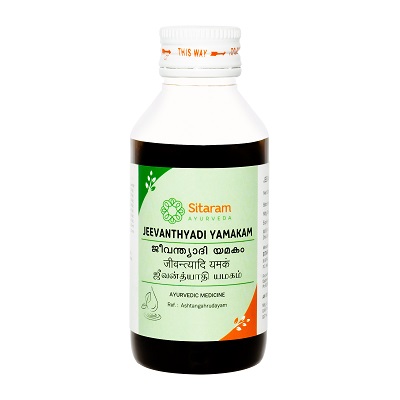 Jeevanthyadi Yamakam is a mixture of ghee and oil, that is used for application in various skin ailments like eczema, psoriasis, contact dermatitis, hives, and allergic rashes.