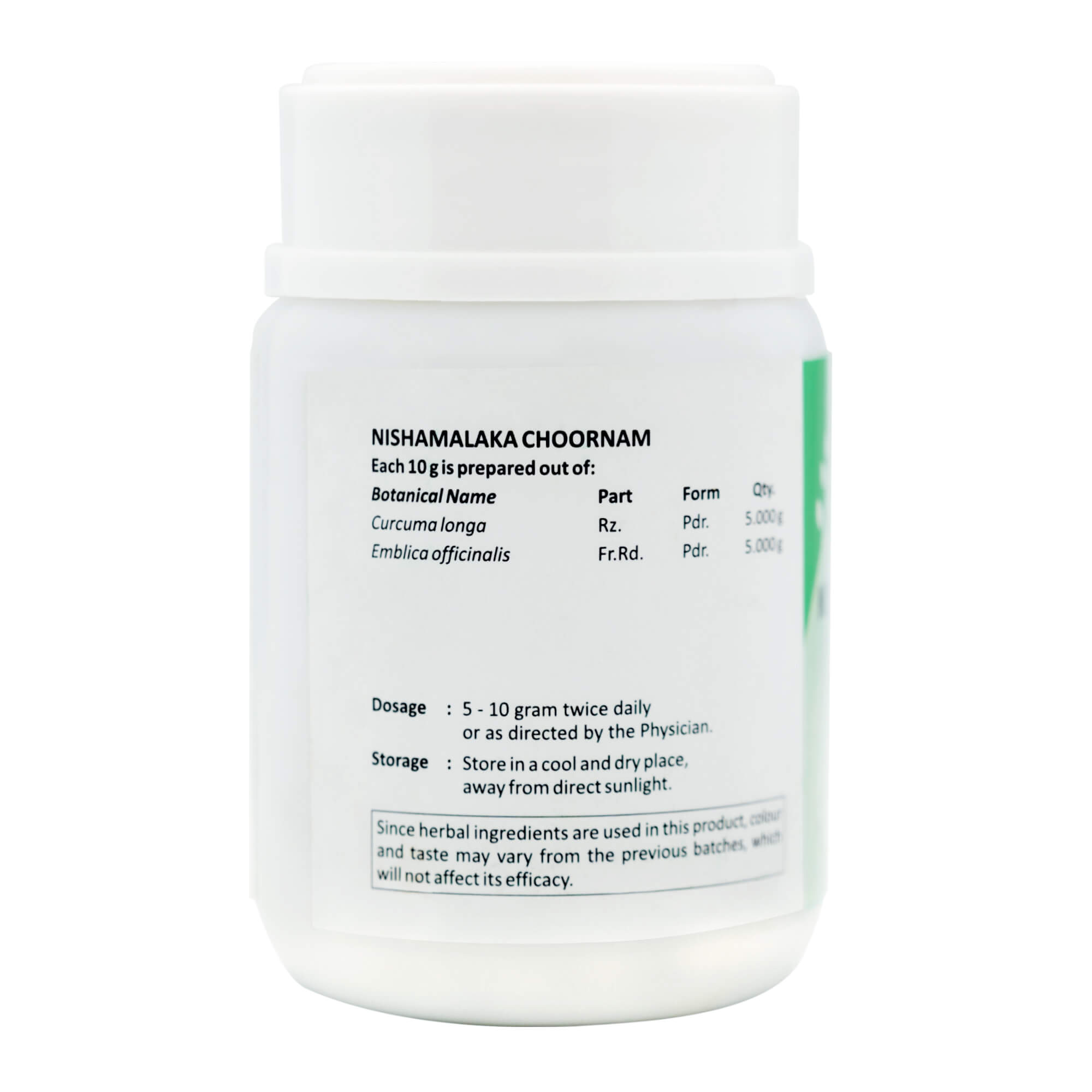 Nisamalaka Choornam is a combination of Turmeric (Nisha – Haridra, Curcuma longa L.) and Indian Gooseberry (Amalaki – Emblica Officinalis Gaertn.) recommended in Ayurvedic classics. It has been proven efficacious and widely used in the management of Diabetes, as well as the management and prevention of Madhumeha complications (Diabetes).