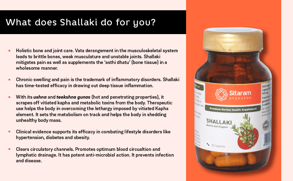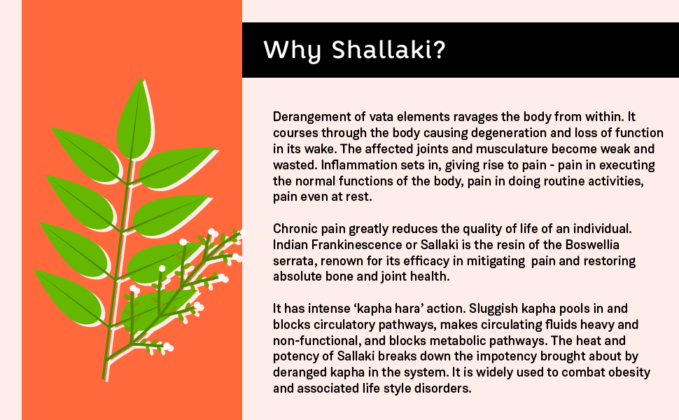 - Holistic bone and joint care. Vata derangement in the musculoskeletal system leads to brittle bones, weak musculature and unstable joints. Sallaki mitigates pain as well as supplements the ?asthi dhatu? (bone tissue) in a wholesome manner.