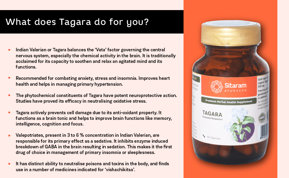 - Indian Valerian or Tagara balances the ?Vata? factor governing the central nervous system, especially the chemical activity in the brain. It is traditionally acclaimed for its capacity to smoothen and relax an agitated mind and its functions.