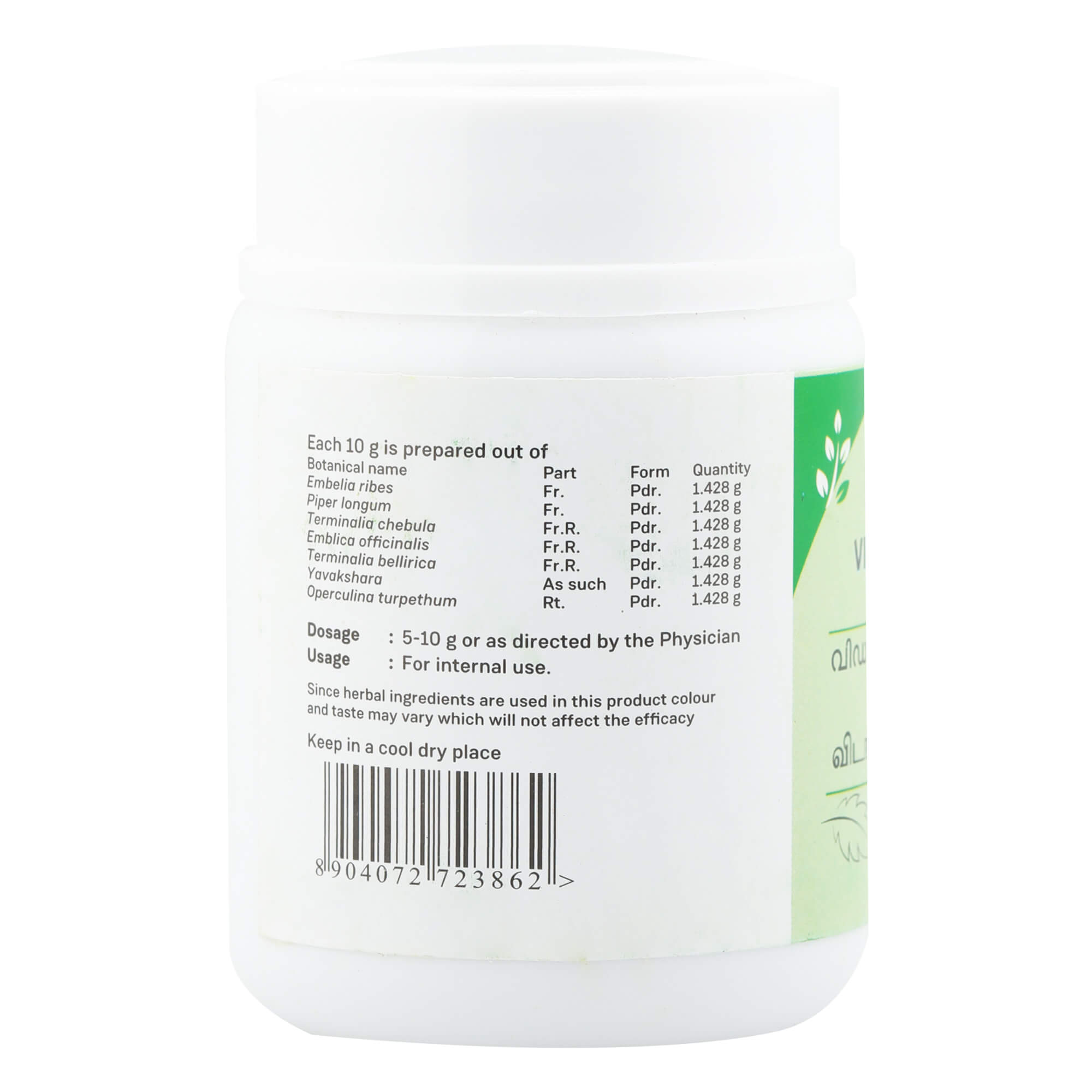 Vilangathanduladi Choornam is a simple formula that aids in the elimination of vitiated Kapha and the correction of imbalances. It improves the gut microbiome and aids in the regulation of metabolism.